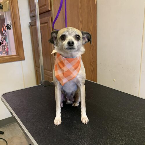 Meet Cindy! This five-year-old Chihuahua blend (10-15 lbs.) is looking for a new home. Amish retired breeding dog housebroken great with other dogs and school-age kids. Currently staying with one of our volunteers and he said they’re doing wonderful
